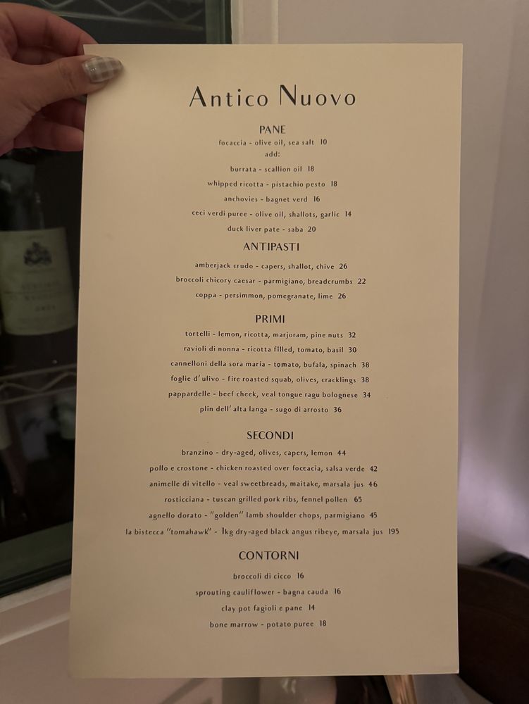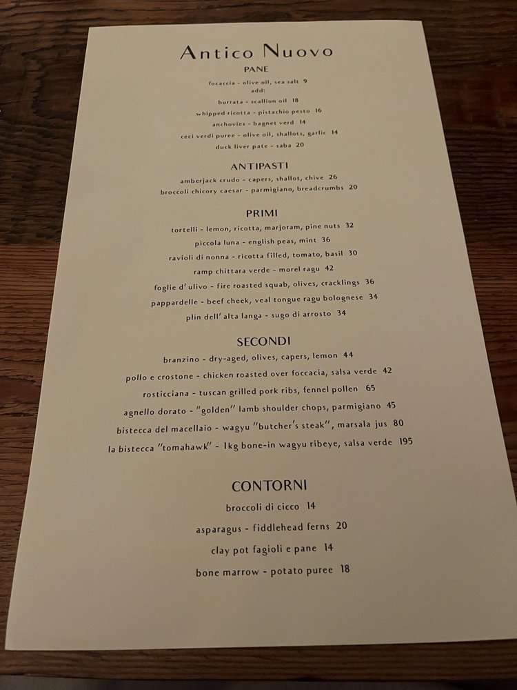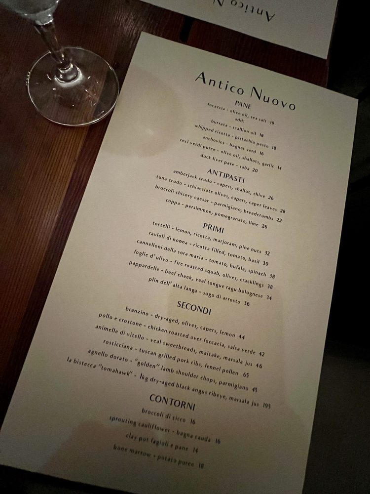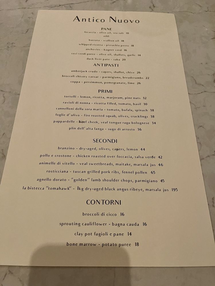 Antico Nuovo Menu