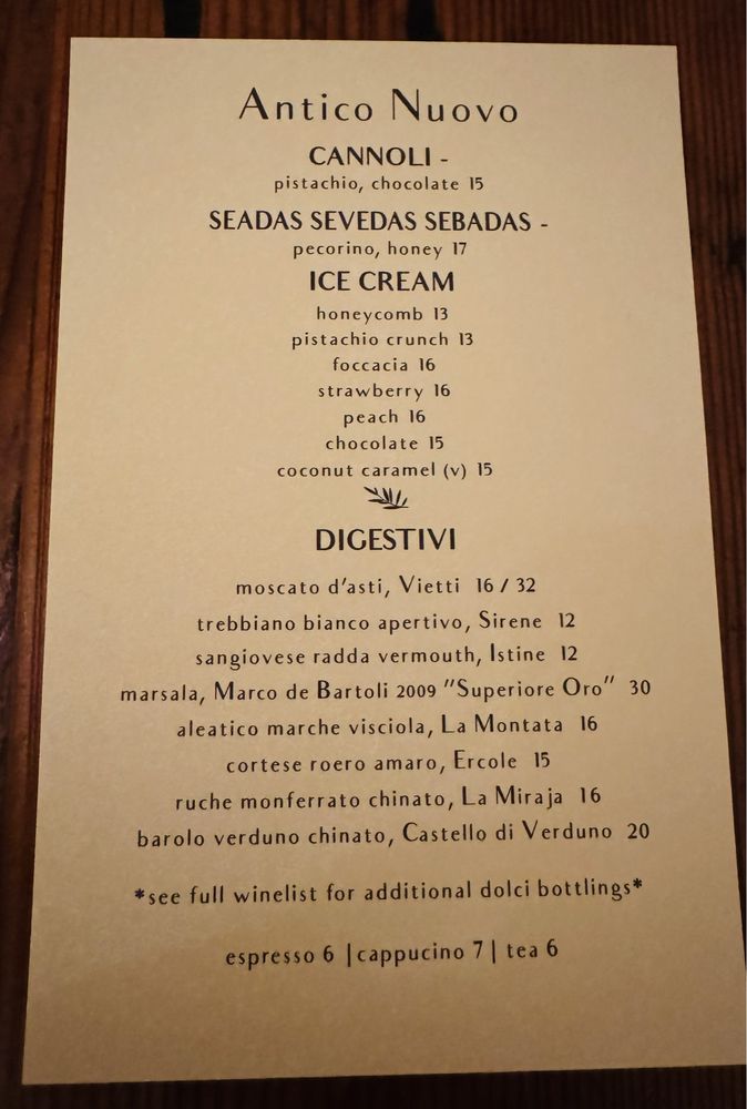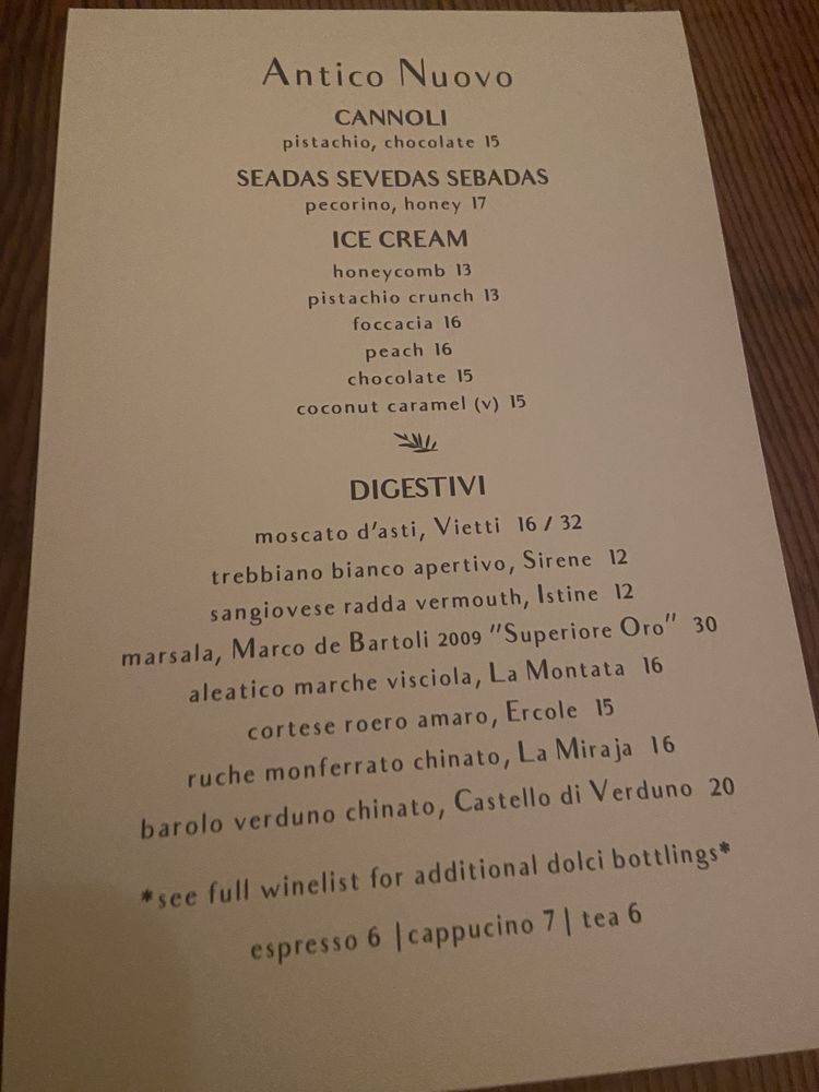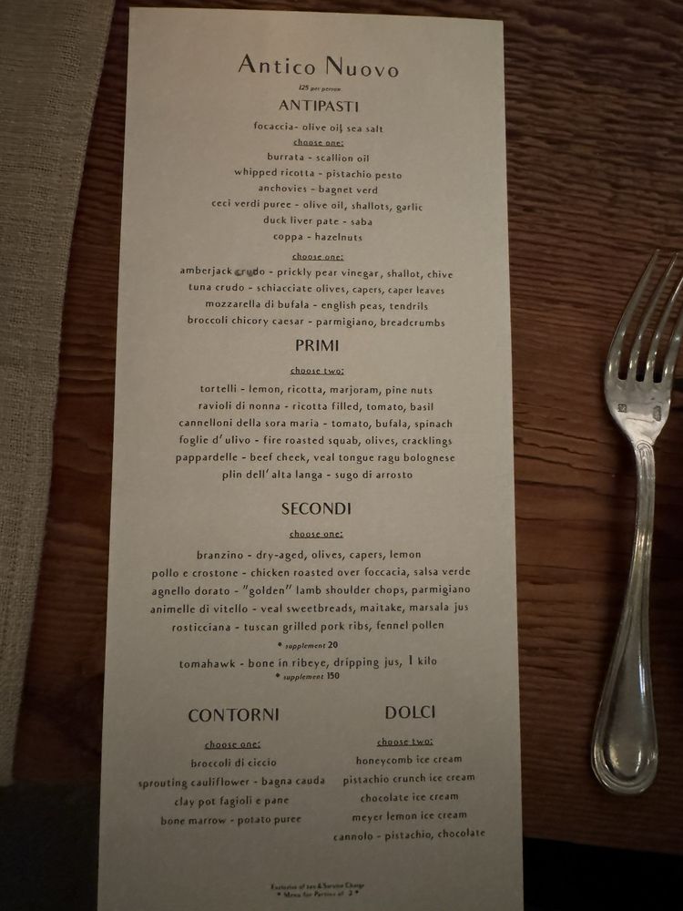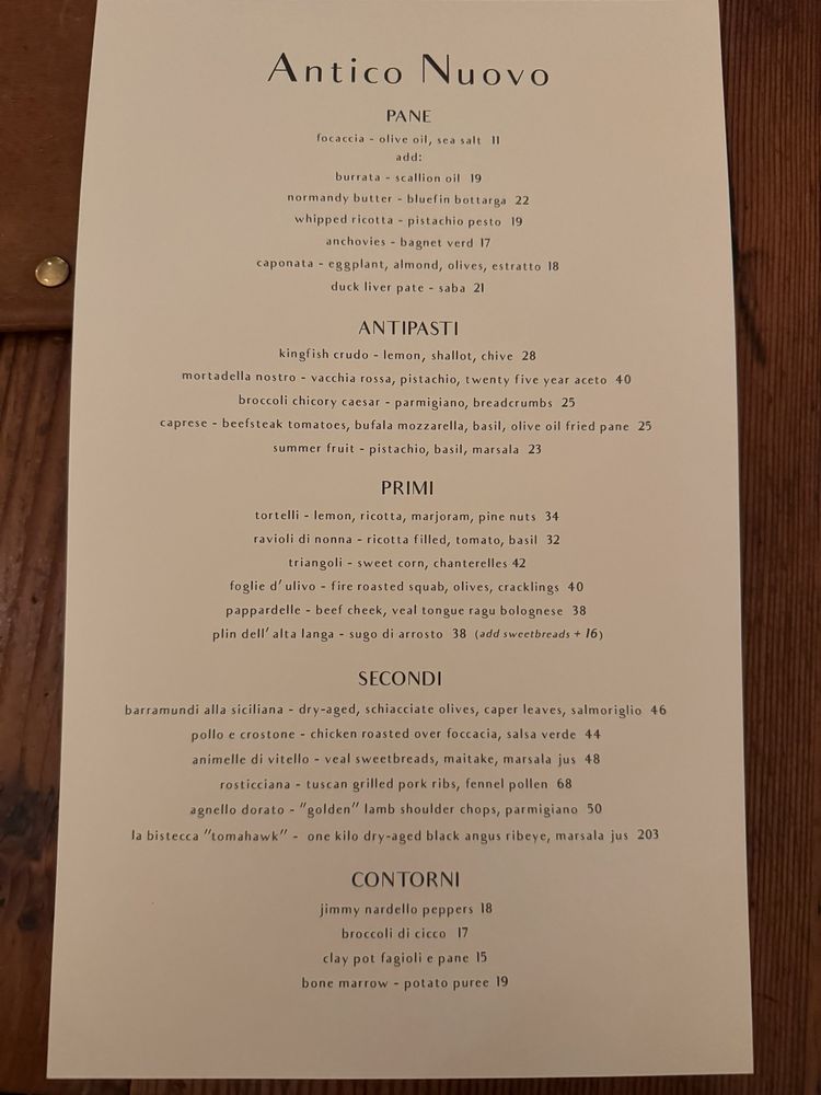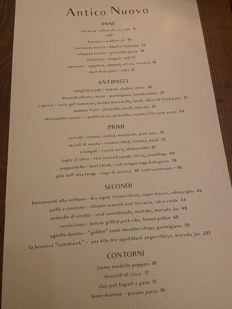 Antico Nuovo Menu